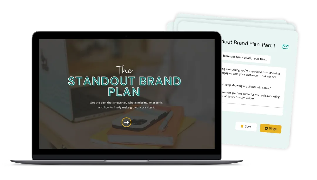 The Standout Brand Plan is an email course that helps you zoom out and finally see what’s keeping your brand from working so you can start building with clarity, confidence, and strategy.